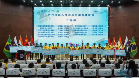 10月27日至29日,2023一帶一路暨金磚國家技能發(fā)展與技術(shù)創(chuàng)新大賽協(xié)作機(jī)器人技術(shù)與應(yīng)用賽項(以下簡稱大賽)由金磚國家工商理事會中方理事會、“一帶一路”暨金磚國家技能發(fā)展國際聯(lián)盟、中國科協(xié)“一帶一路”暨金磚國家技能發(fā)展與技術(shù)創(chuàng)新培訓(xùn)中心主辦,中國發(fā)明協(xié)會、教育部中外人文交流中心聯(lián)合主辦,金磚國家工商理事會(中方)技能發(fā)展工作組承辦,六安職業(yè)技術(shù)學(xué)院、武漢天坤蒼穹信息科技有限公司、北京中燁科技有限公司、北京嘉克新興科技有限公司聯(lián)合承辦,全國總決賽在六安職業(yè)技術(shù)學(xué)院順利舉辦。